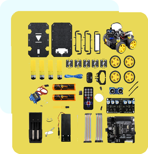 We provide three-in-one Robotics & Artificial Intelligence lab for the school with different sets of kits for Preparatory Lab, Junior Lab and Senior Lab. We also provides class room kits which the teacher will use as teaching aid.