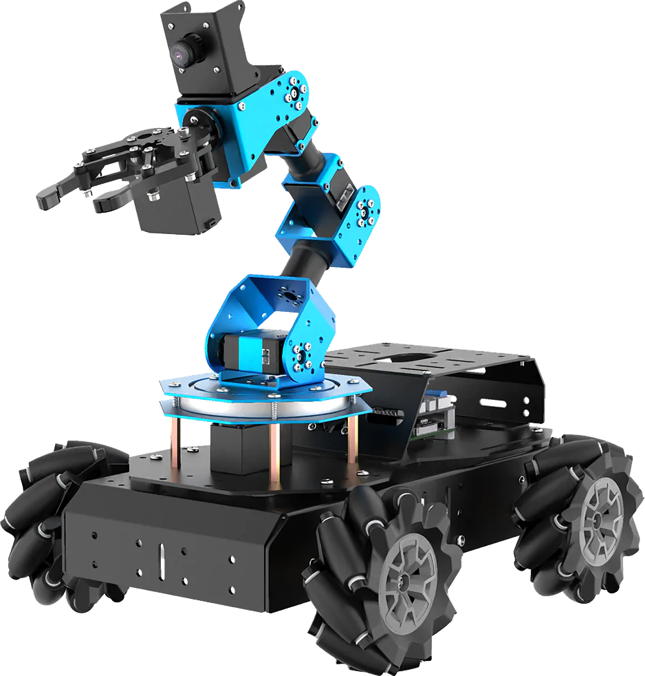 Based on ROS, ArmPi Pro is a smart vision transporting robot powered by Raspberry Pi and programmed in Python. An omni-directional mecanum wheels car, which can realize moving and picking, target tracking, intelligent transporting and other cool functions.