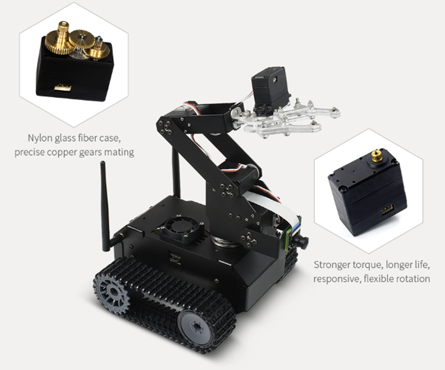 ArmPi mini is a smart vision robot arm powered by Raspberry Pi. It adopts high-performance intelligent servos and HD camera, and can be programmed in Python. With its impressive capabilities, ArmPi mini unlocks diverse AI applications, such as smart vision-guided recognition and grasping.